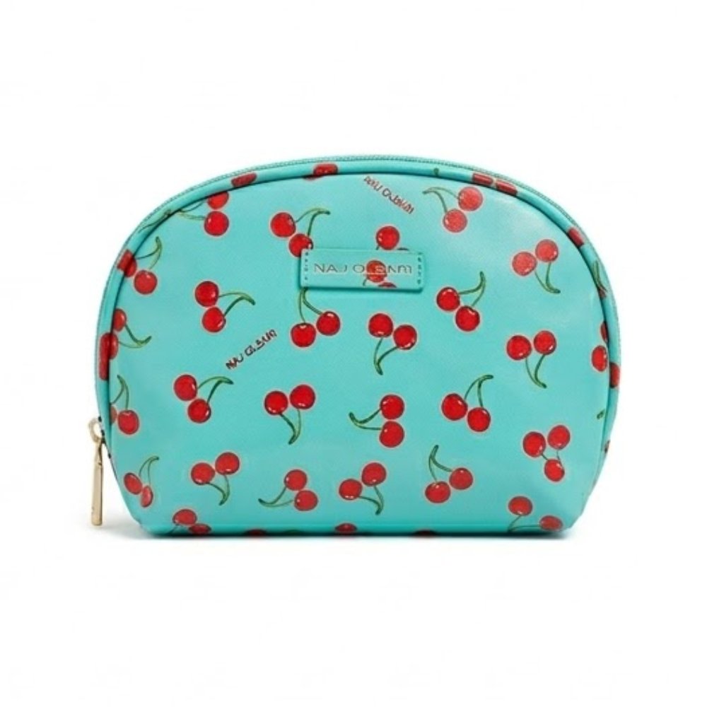 Un'esplosione di allegria e stile vintage caratterizza questo beauty a forma di mezzaluna con ciliegie, l'accessorio perfetto che unisce la praticità di un contenitore capiente all'eleganza di un pezzo iconico da portare sempre con te.