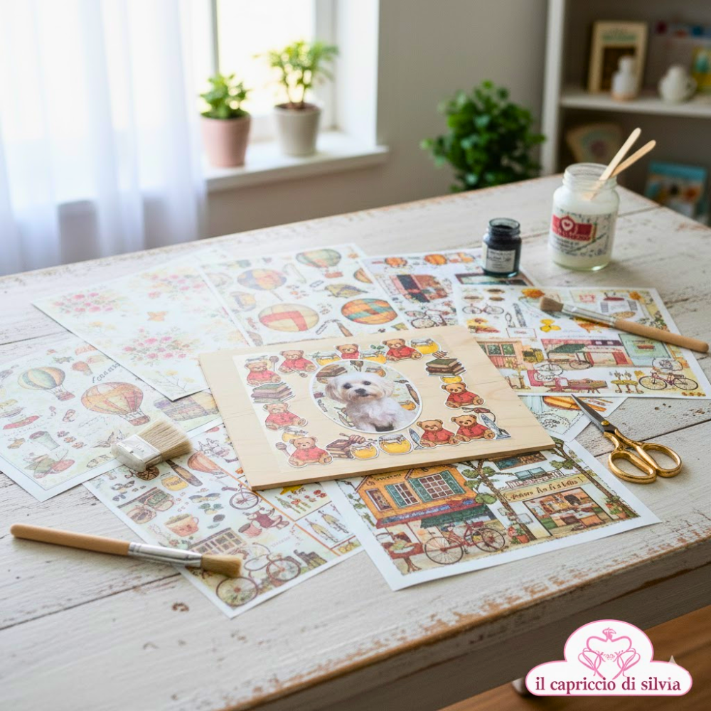 Ciao a tutte! Oggi io e Jhonny Weiss vogliamo mostrarvi come la creatività non conosca confini. Spesso pensiamo che il découpage sia una tecnica antica, ma oggi vi svelerò come l'ho rivoluzionata unendo l'uso del computer alla bellezza della nostra carta velo.