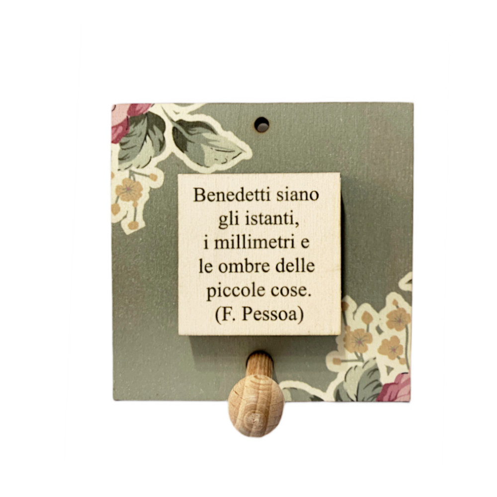 Bellissimo quadretto portachiavi da parete con ganci per appendere le vostre chiavi, in legno, con frase di F. Pessoa: "Benedetti siano gli istanti, i millimetri e le ombre delle piccole cose".