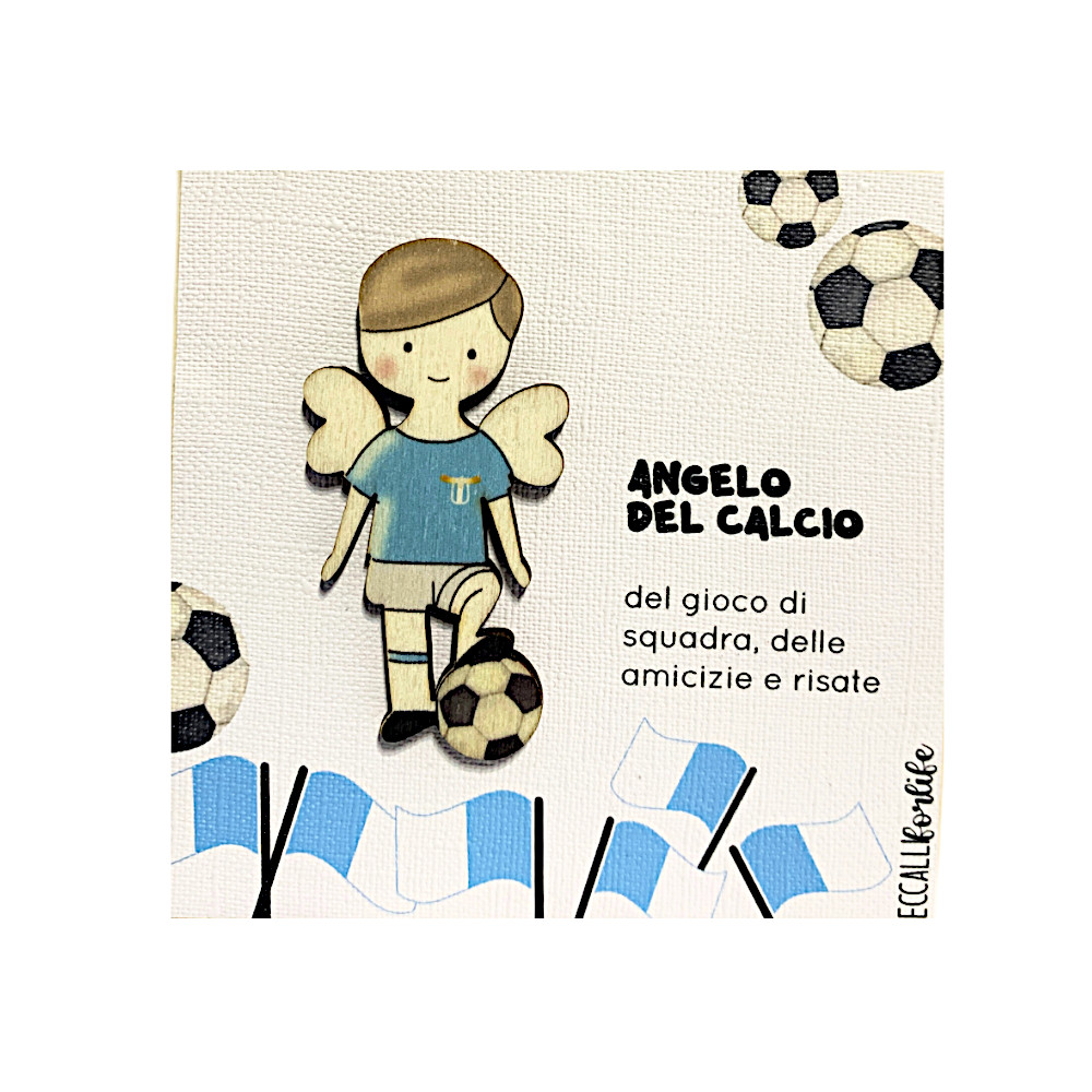 Bellissimo quadretto in legno da parete con l' Angelo del Calcio, squadra Lazio, con frase.