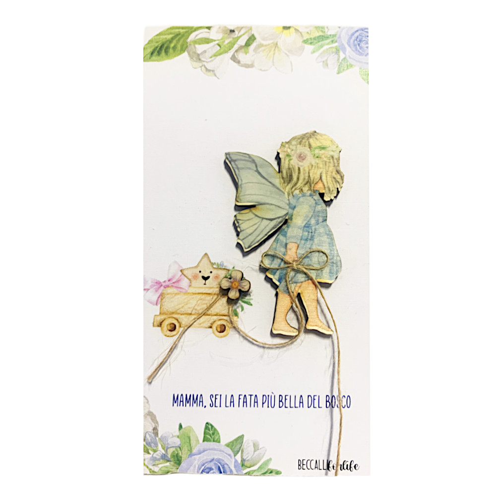 Bellissimo quadretto in legno da parete con la Fata della Mamma e frase "Mamma sei la fata più bella del bosco".