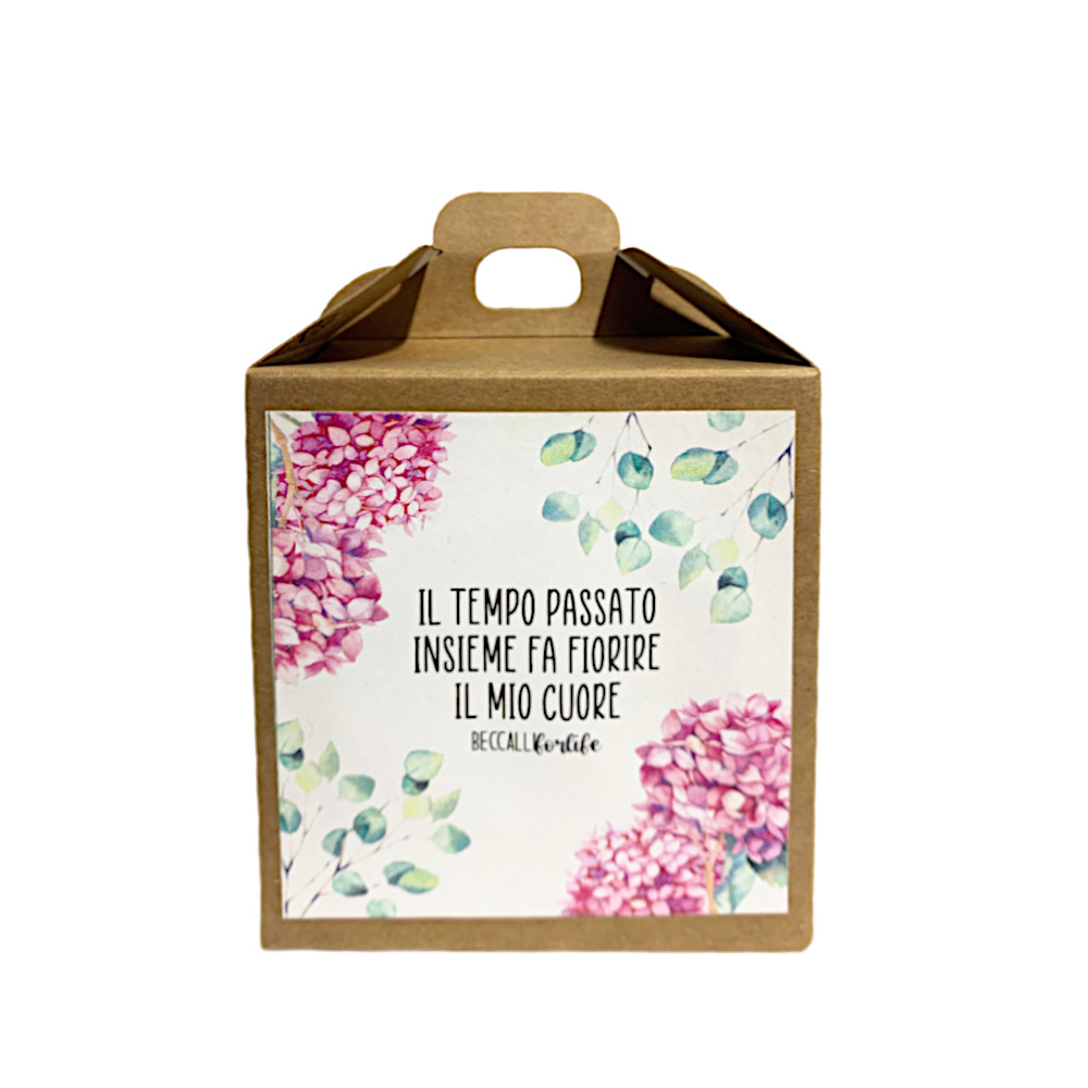 Scatola con frase emozionale "Il tempo passato insieme fa fiorire il mio cuore".
