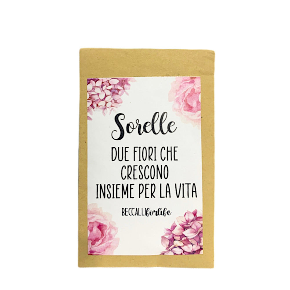 Bustina di semi mix fiori di campo con frase emozionale "Sorelle. Due fiori che crescono insieme per la vita".