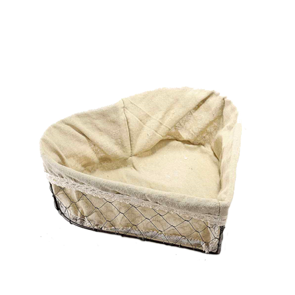 Bellissimo cestino decorativo in ferro a forma di cuore con rivestimento interno in stoffa.