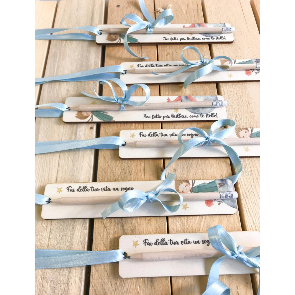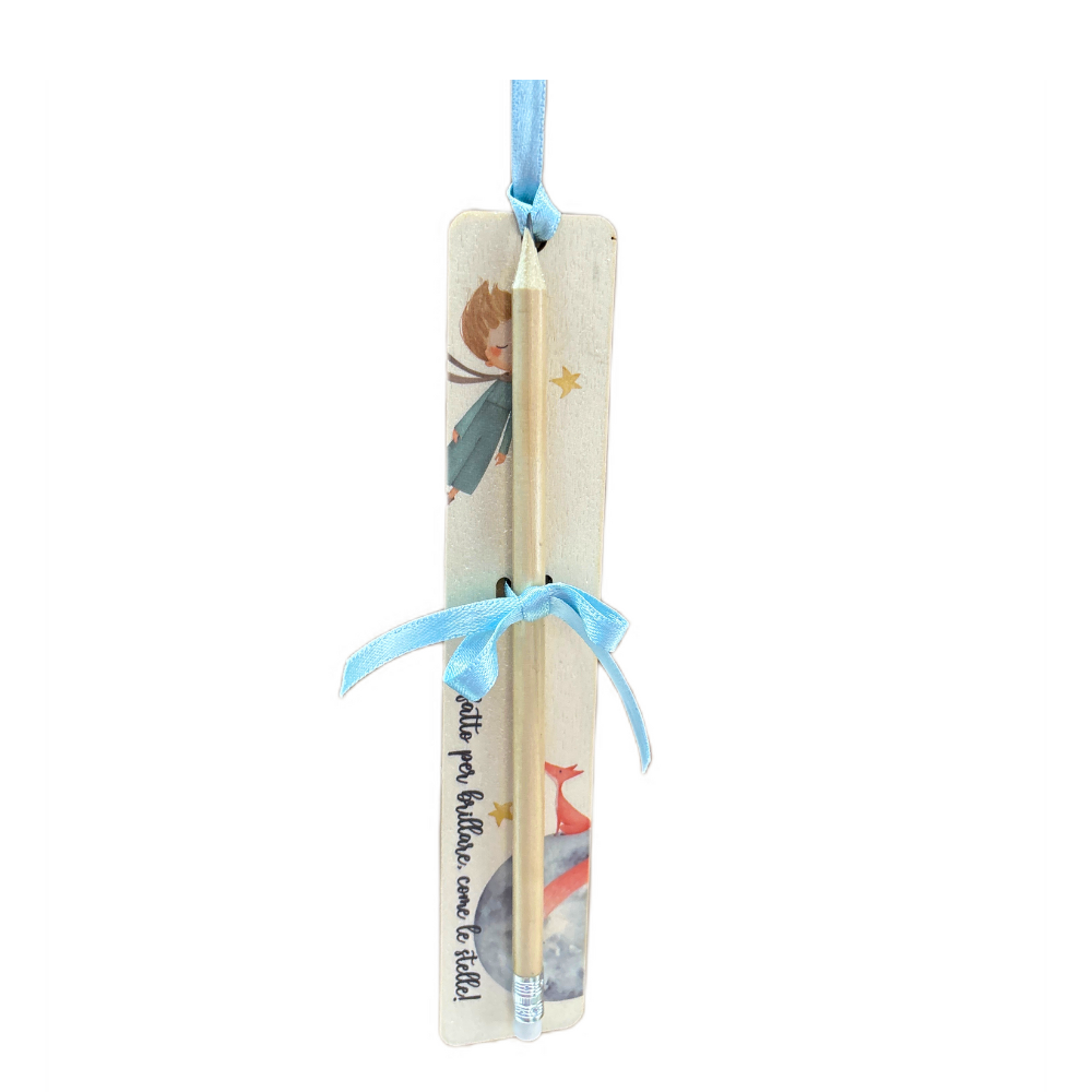 Segnalibro con matita in legno del Piccolo Principe e la volpe.