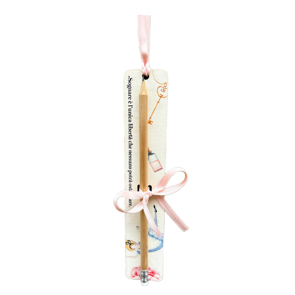 Segnalibro con matita in legno della fiaba di Alice nel Paese delle Meraviglie.