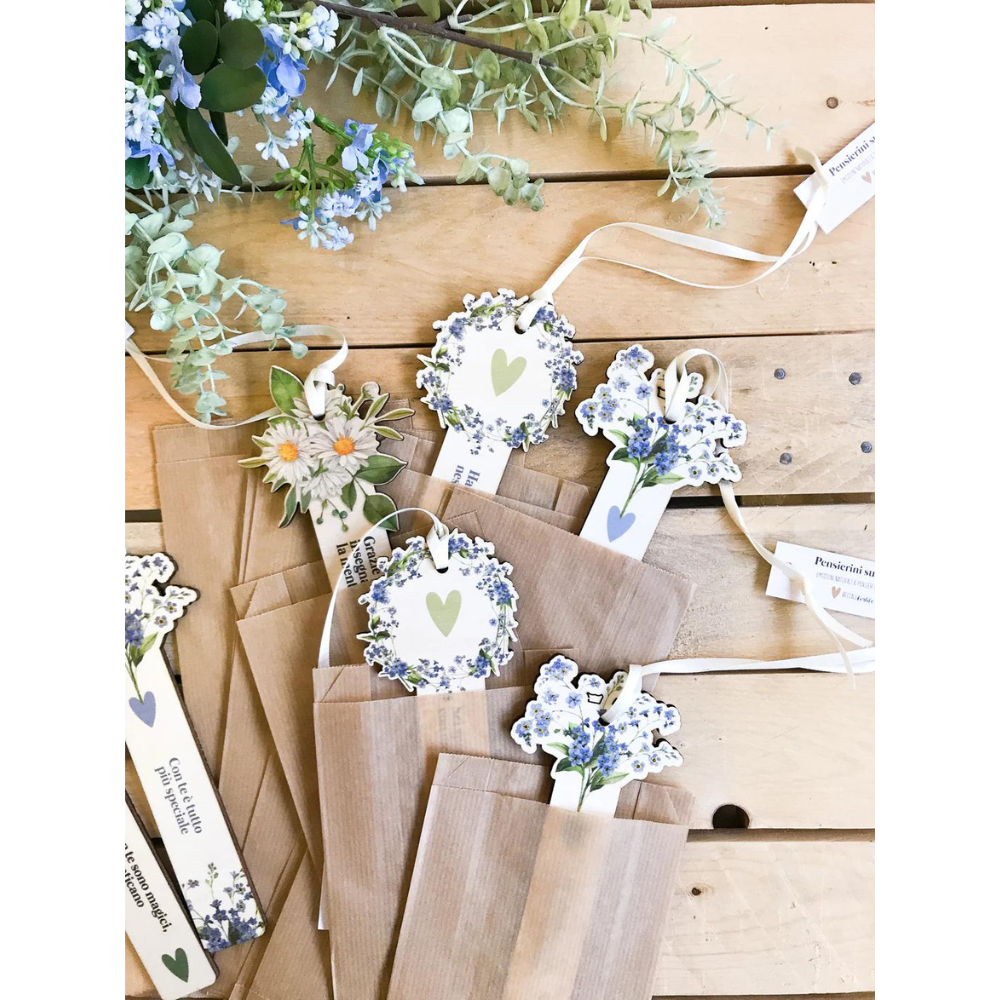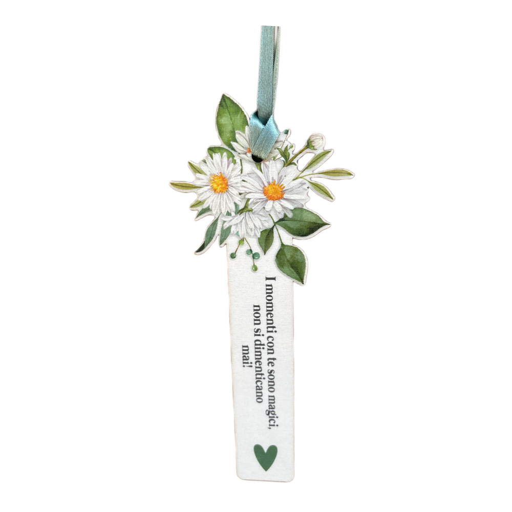 E' arricchito da un nastrino verde, bigliettino "Pensierini su legno, emozioni naturali" e la stampa della scritta "I momenti con te sono magici, non si dimenticano mai!".
