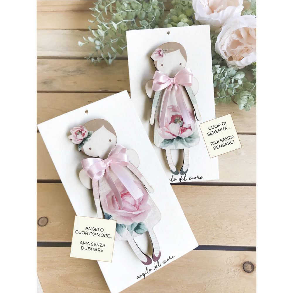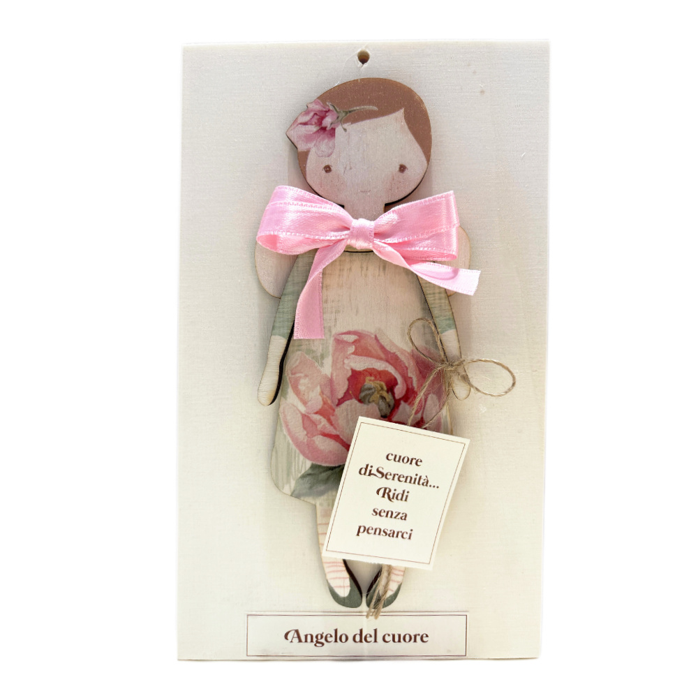 Bellissimo quadretto da parete in stile shabby chic con l' Angelo del cuore e frase "Cuore di Serenità ... Ridi senza pensarci".