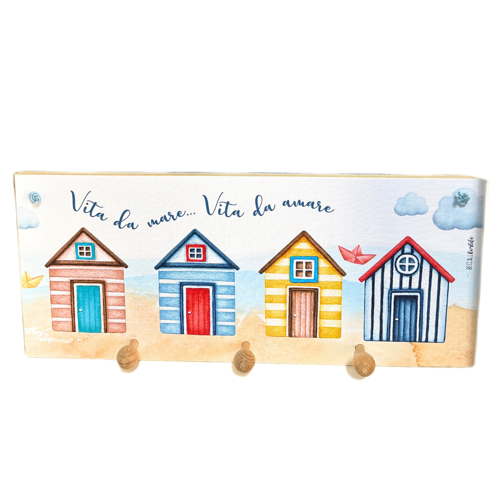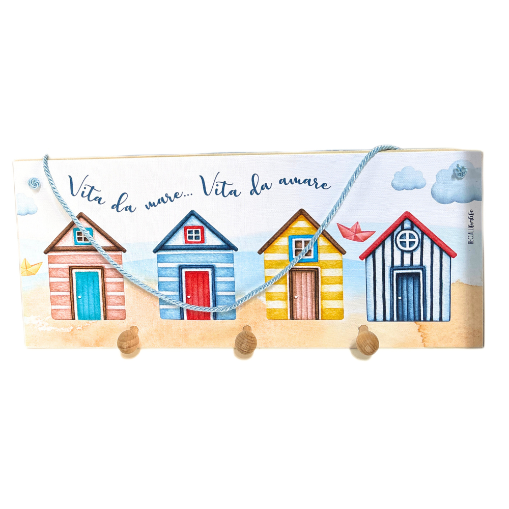 Bellissimo quadretto portachiavi da parete a tema mare con ganci per appendere le vostre chiavi, in legno, in stile vintage, con frase "Vita da mare... Vita da amare".