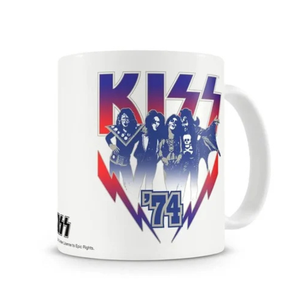 Confezione regalo contenente una bellissima tazza rock dei Kiss con la scritta "74".