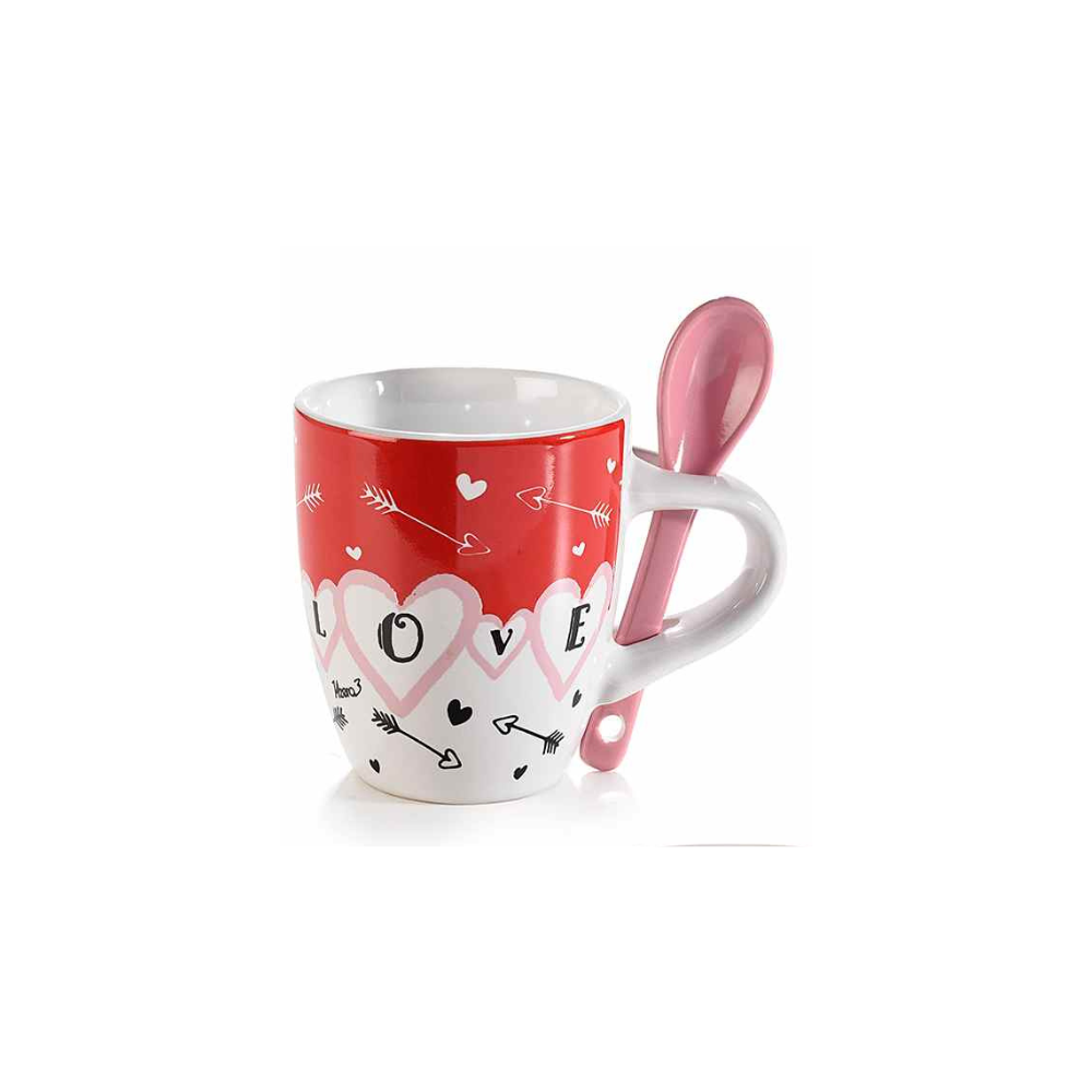Tazzina da caffè Love in porcellana decorata con cucchiaino coordinato, con design a 360°.