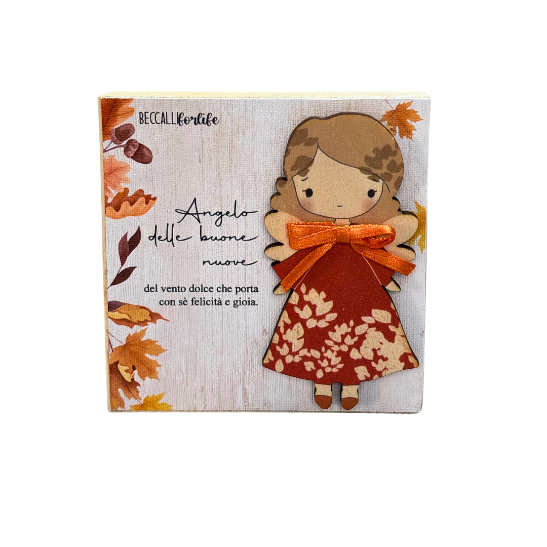Bellissimo quadretto in legno da parete con l' Angelo delle buone nuove e frase "Angelo delle buone nuove del vento dolce che porta con sè felicità e gioia".