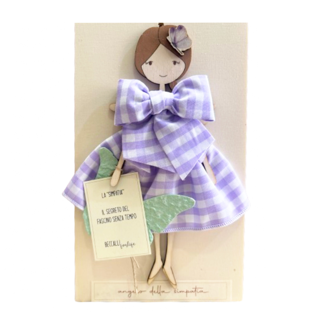 L'angelo è disegnato nel laboratorio creativo dell'azienda italiana su di un supporto in legno e decorato a mano, con tessuti pregiati di manifattura sempre italiana.