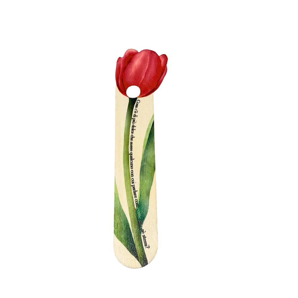 Segnalibro in legno della linea Tulipani con la scritta "Cosa c'è di più dolce che avere qualcuno con cui parlare così come con se stessi?".