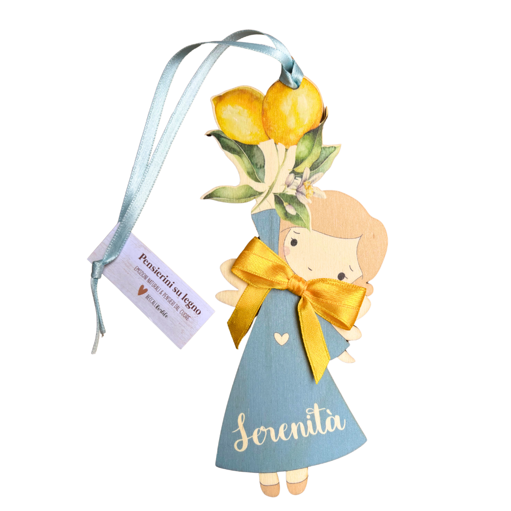 Angelo della Serenità, in legno con limoni e fiocchetto giallo.