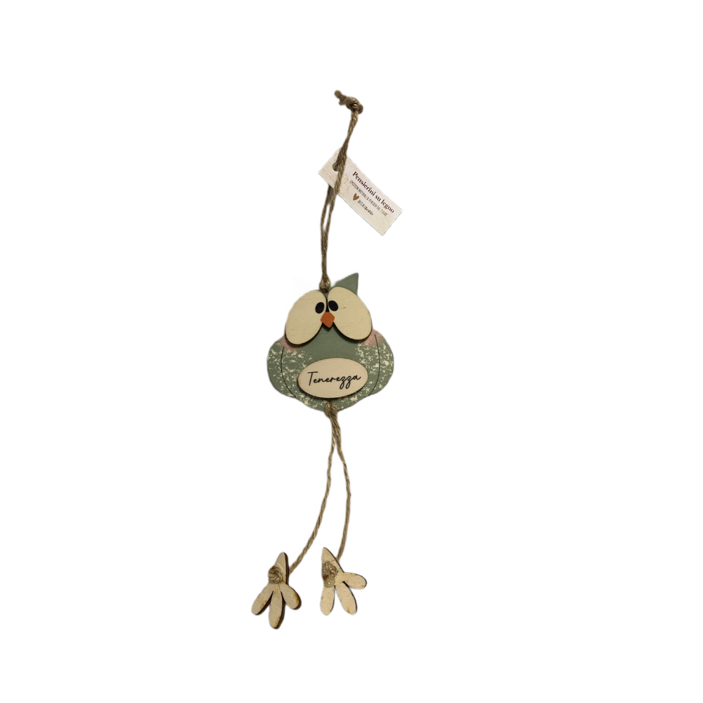 Gufetto della Tenerezza da appendere, in legno, con cordino.