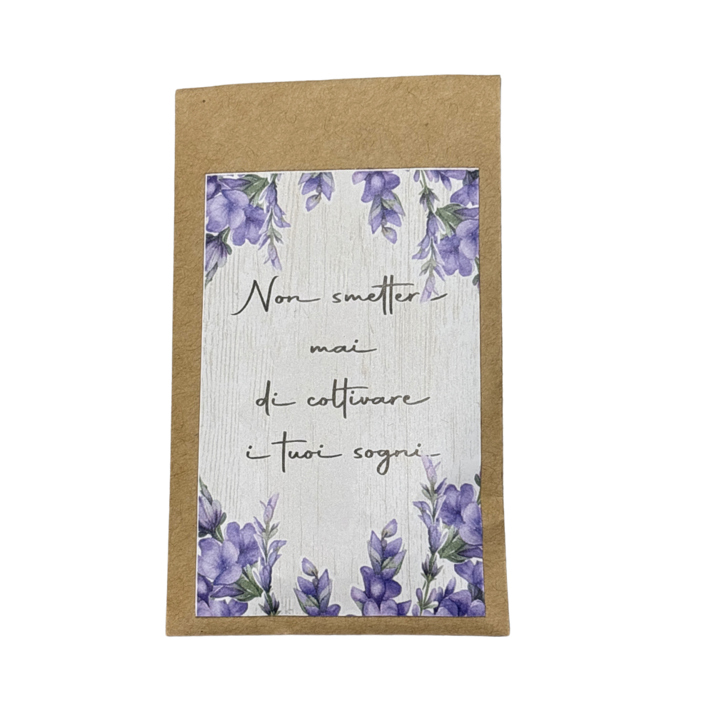 Bustina di semi con frase emozionale "Non smettere mai di coltivare i tuoi sogni".