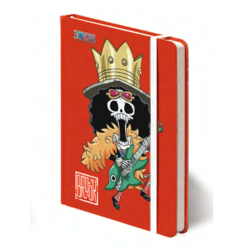 Quaderno A5, copertina rigida con raffigurato Brook, pagine a righe color avorio con elastico in tinta.