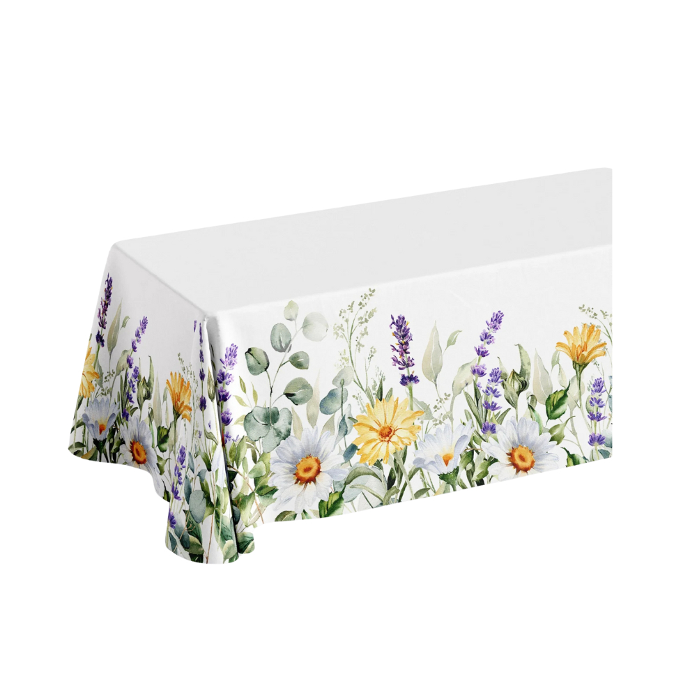 Tovaglia grande con fiori di campagna e lavanda in canvas di cotone 100%.