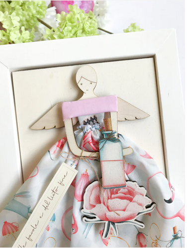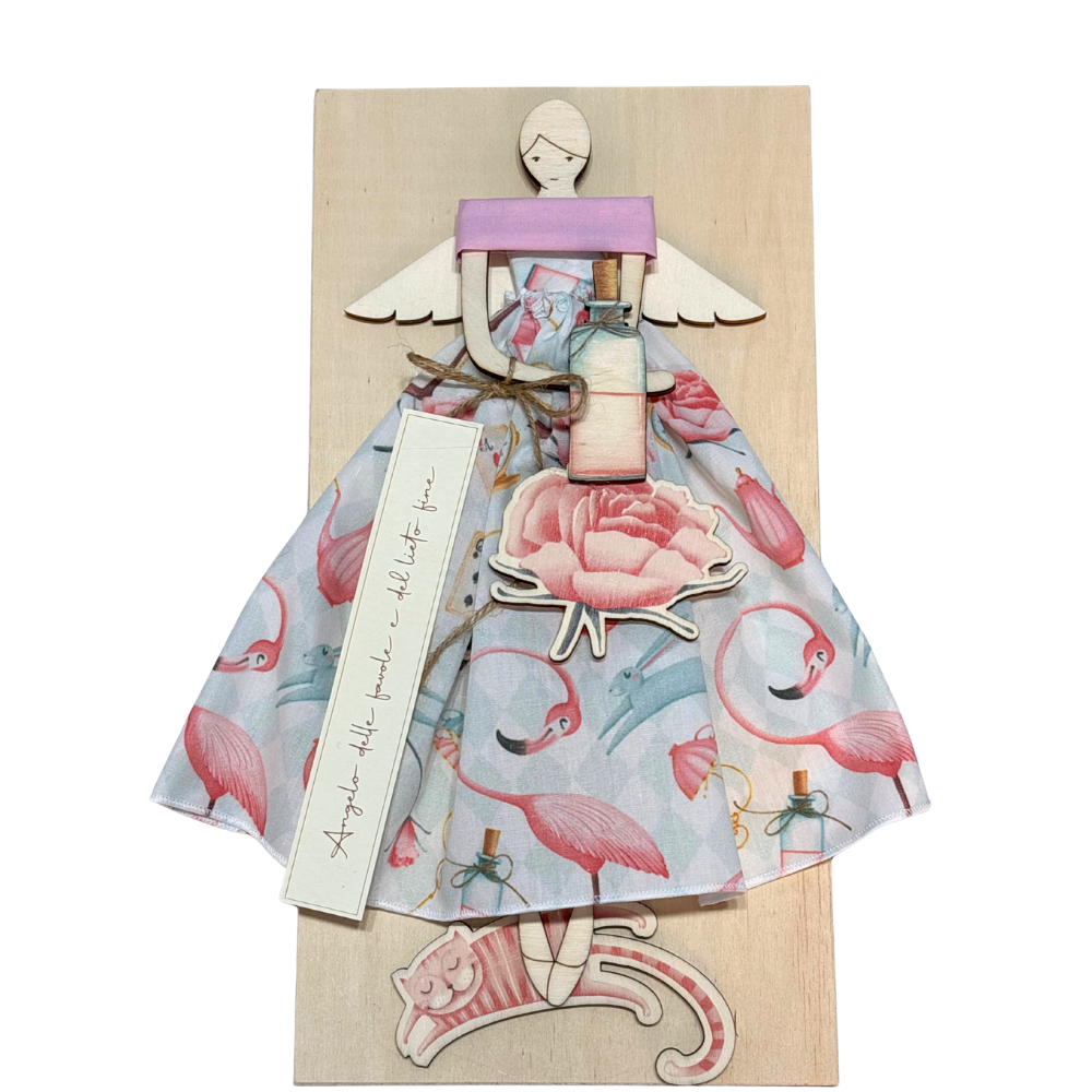L'angelo è disegnato nel laboratorio creativo dell'azienda italiana su di un supporto in legno e decorato a mano, con tessuti pregiati di manifattura sempre italiana.