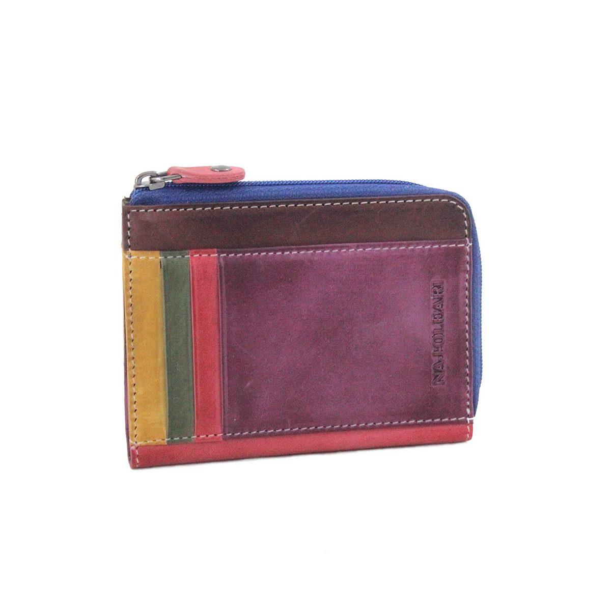 Portafoglio Naj-Oleari in pelle della linea continuativa con dettagli colorati.