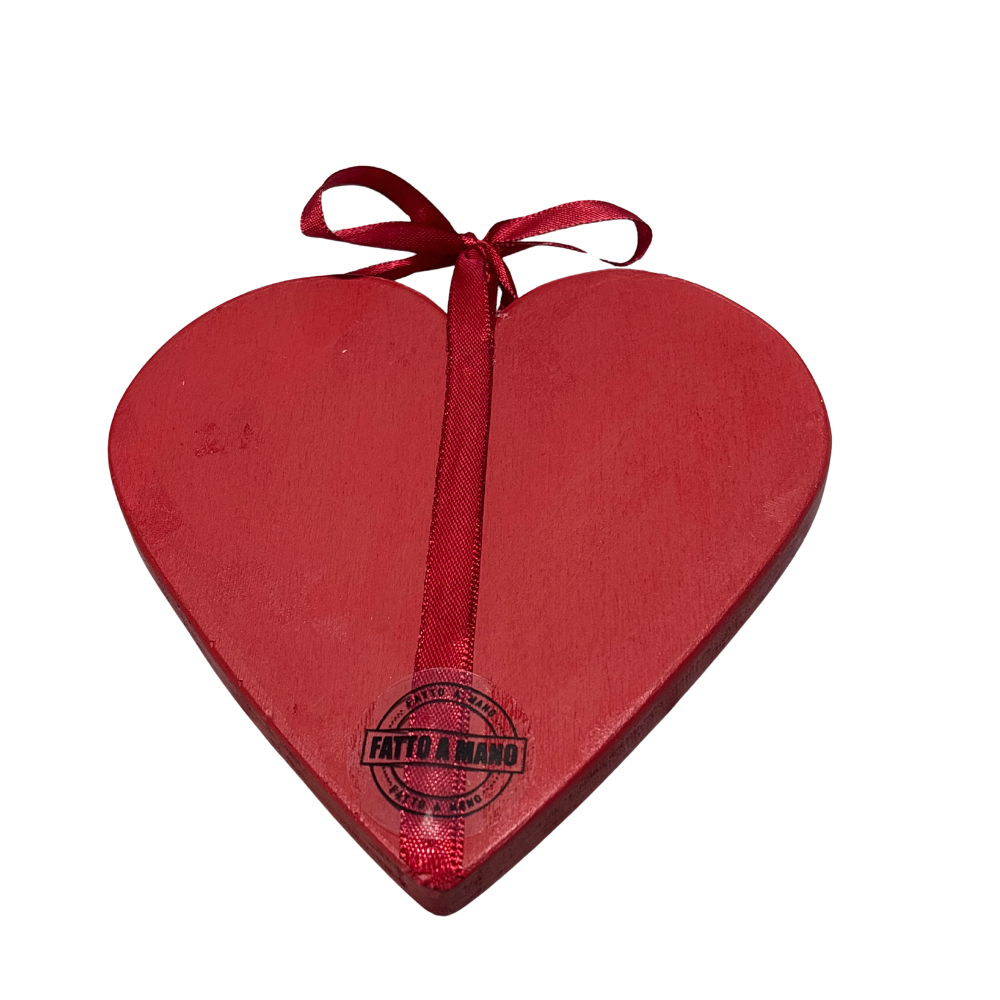 Un cuore in legno con raffigurata Sarah Kay, realizzato e decorato artigianalmente in Italia.