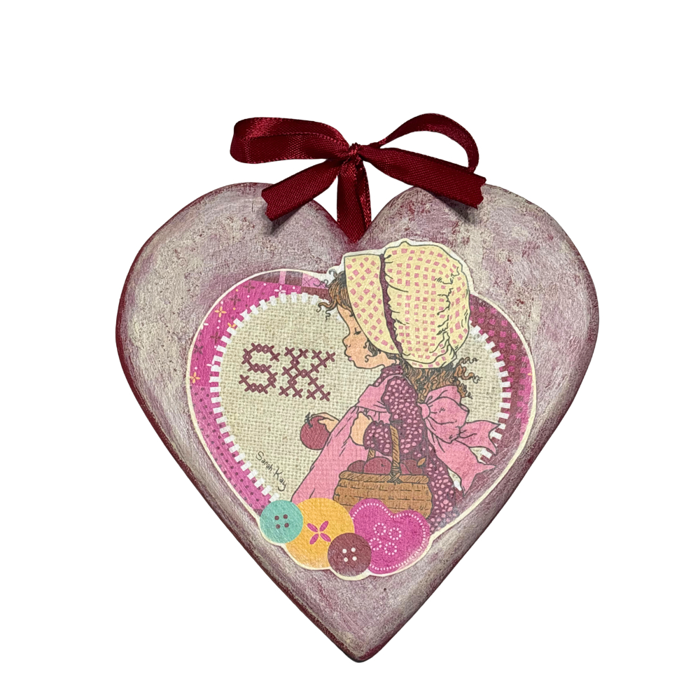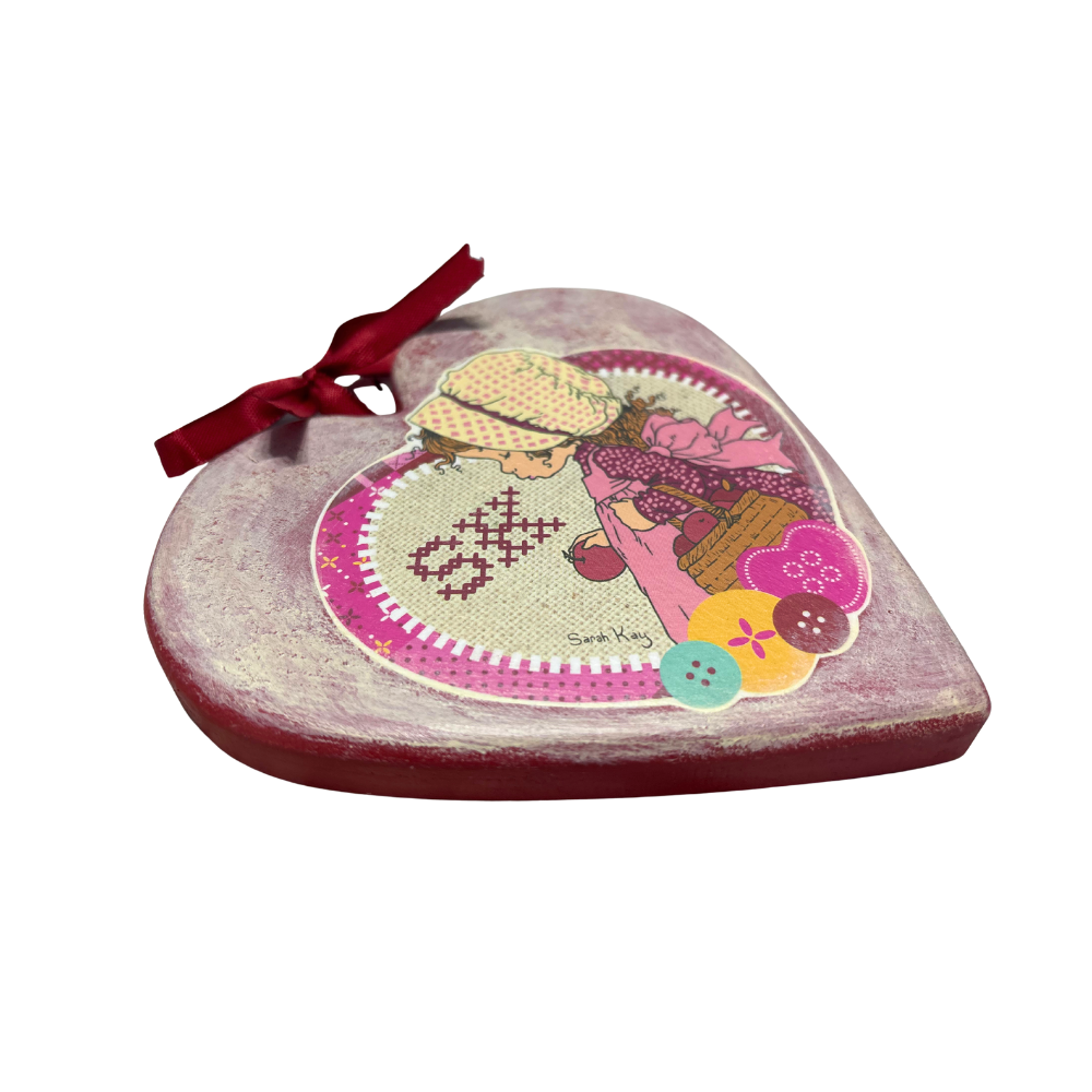 Cuore in legno con Sarah Kay da appendere