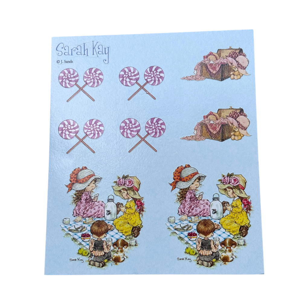 Un foglio di decalcomanie ad acqua della linea di Sarah Kay.