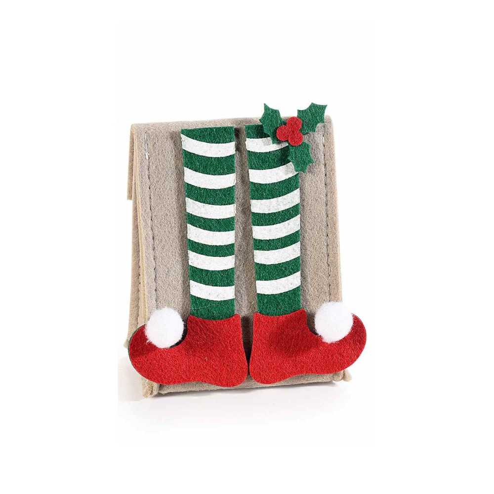 Borsetta Natalizia in Panno con Decorazioni in Rilievo e Pompon