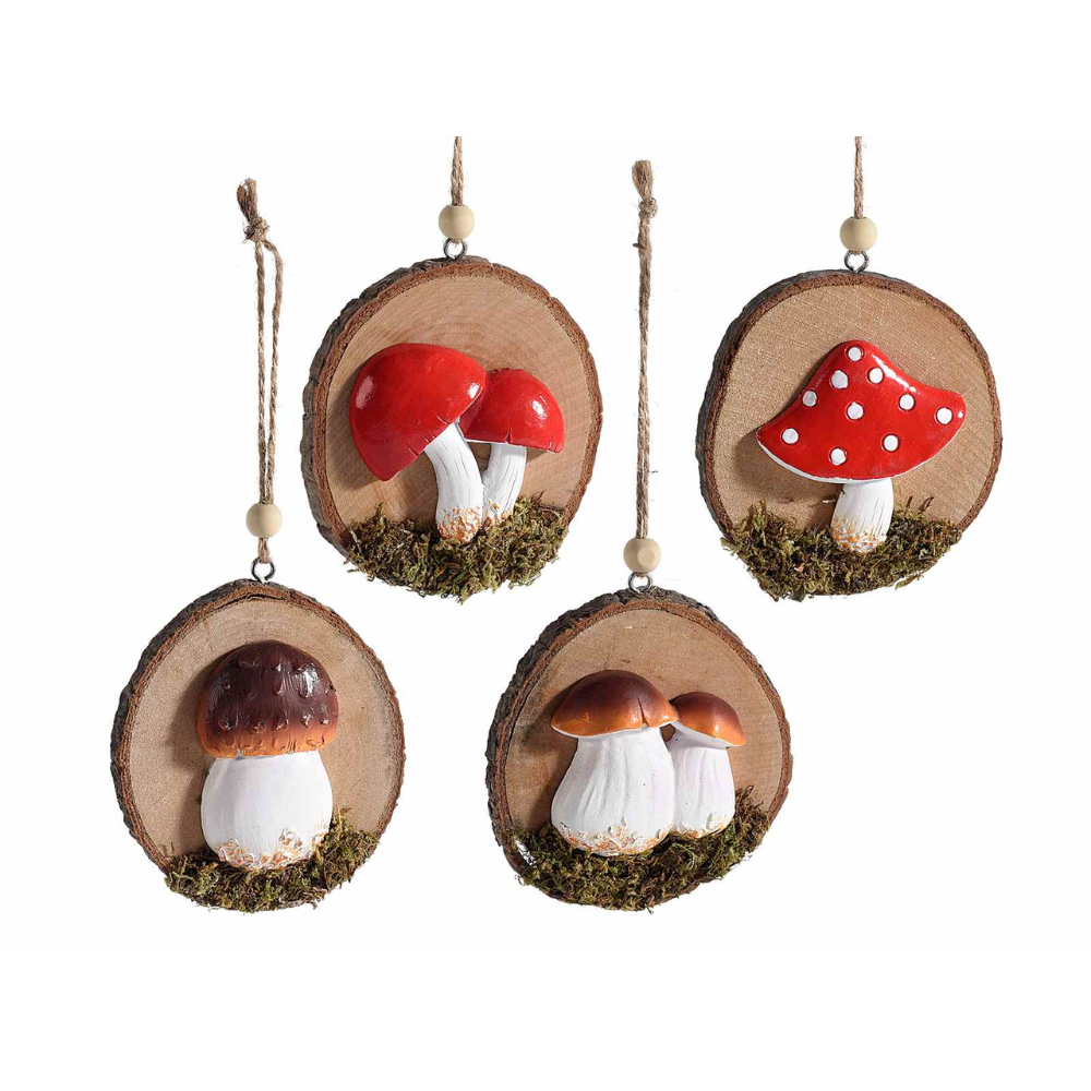 Porta la magia dell'Autunno nella tua casa con questo adorabile addobbo in legno a forma di tronchetto. Ogni pezzo è unico, con un grazioso funghetto in resina posizionato sulla superficie.