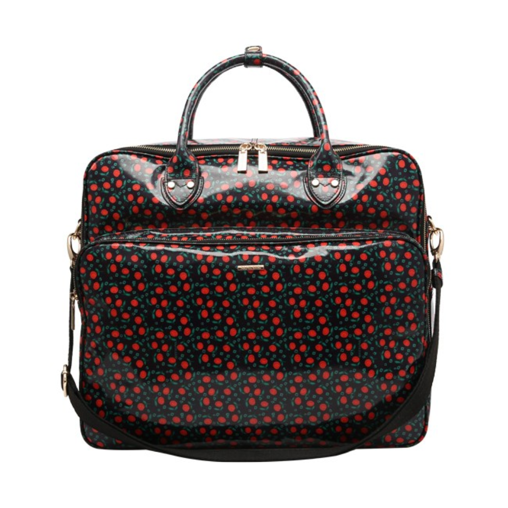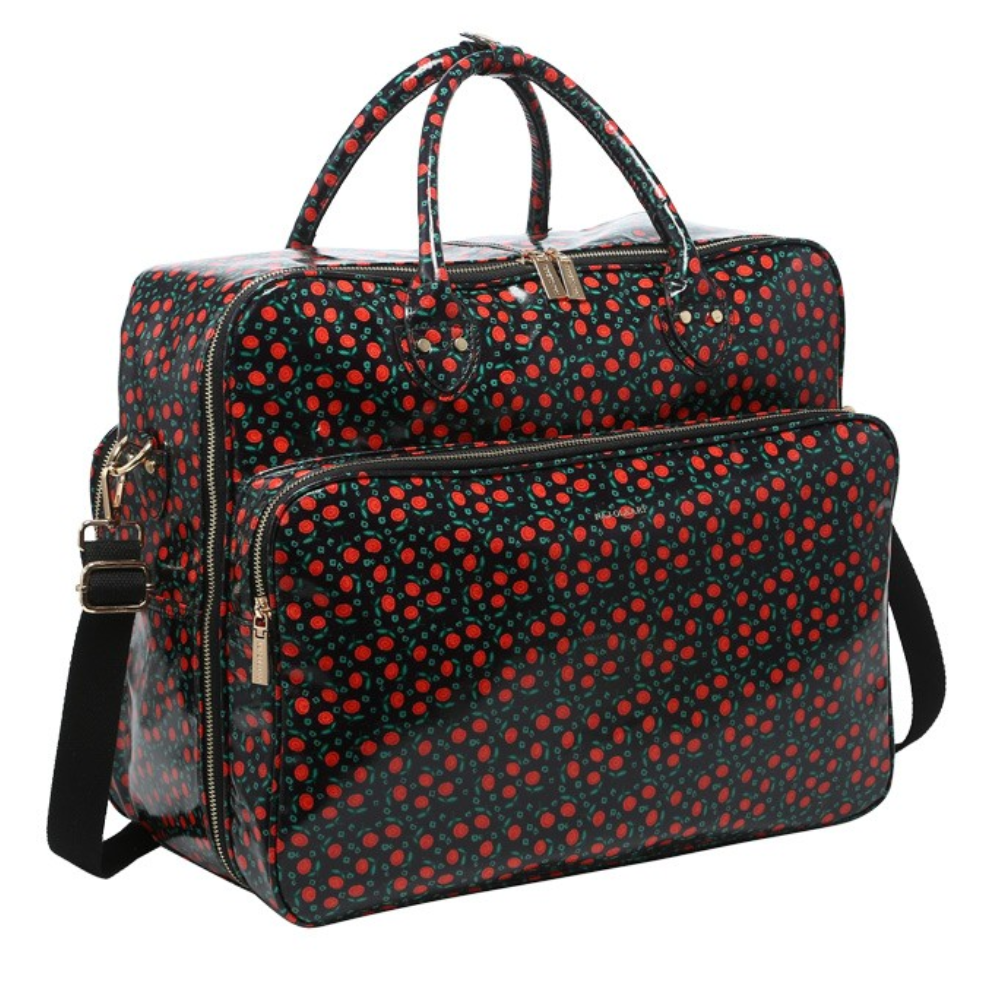 Realizzato in materiale lucido spalmato in sottovetro, questo borsone vanta un'elegante finitura che cattura la luce, arricchita da un delicato pattern a rose 🌹. Non è solo bellissimo, ma anche estremamente funzionale: