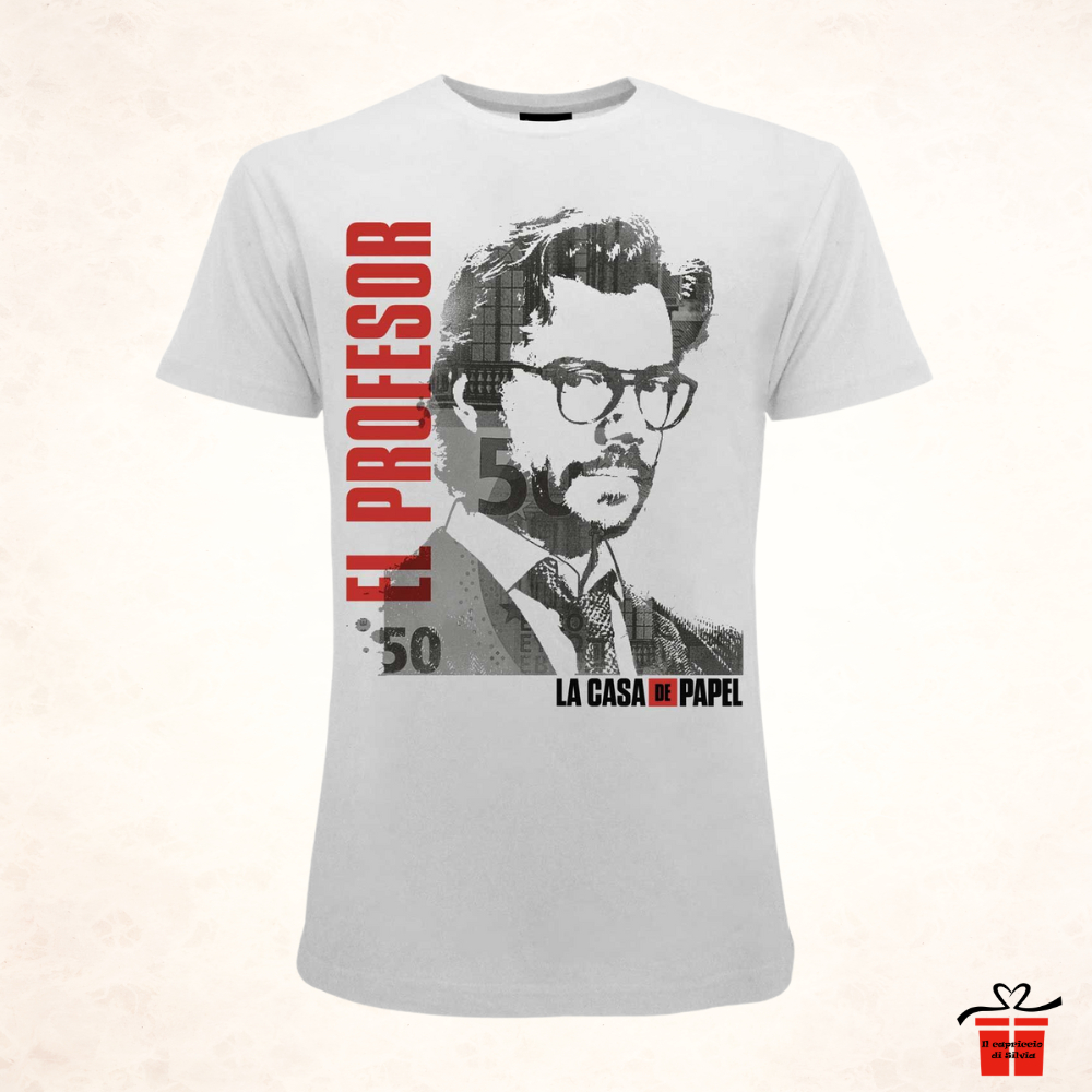Indossa il fascino e il mistero della mente più geniale delle serie TV! Questa maglietta dedicata a El Profesor è un pezzo imperdibile per ogni fan de La Casa di Carta, selezionata personalmente per garantirti uno stile iconico e originale.