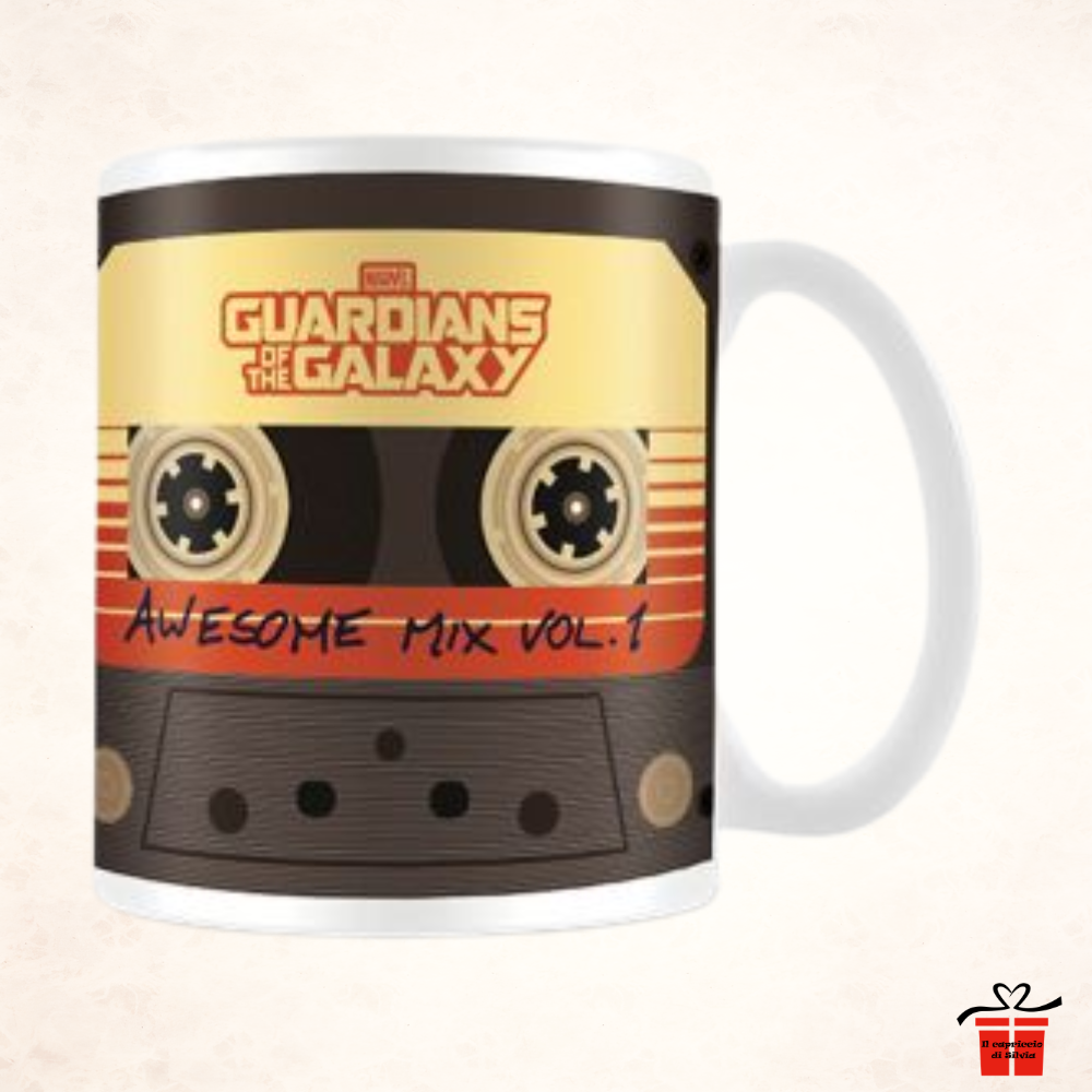 Rivivi le emozioni del leggendario film Marvel con questa tazza dedicata all'iconica musicassetta "Awesome Mix Vol. 1" di Peter Quill. Prodotta da Pyramid International, è un oggetto che unisce la nostalgia del vintage alla grinta dei supereroi, perfetta per chi vuole iniziare la giornata con il ritmo giusto.