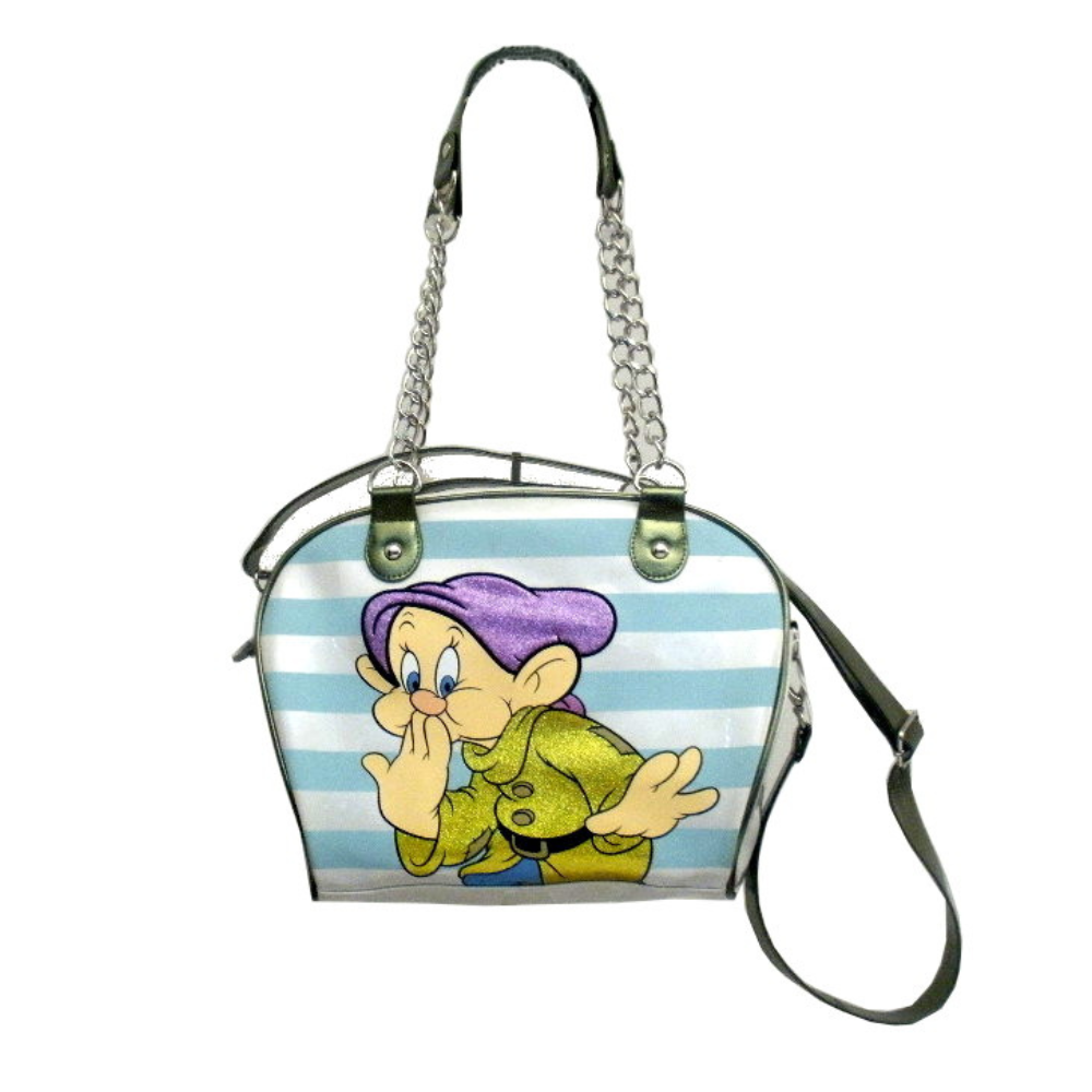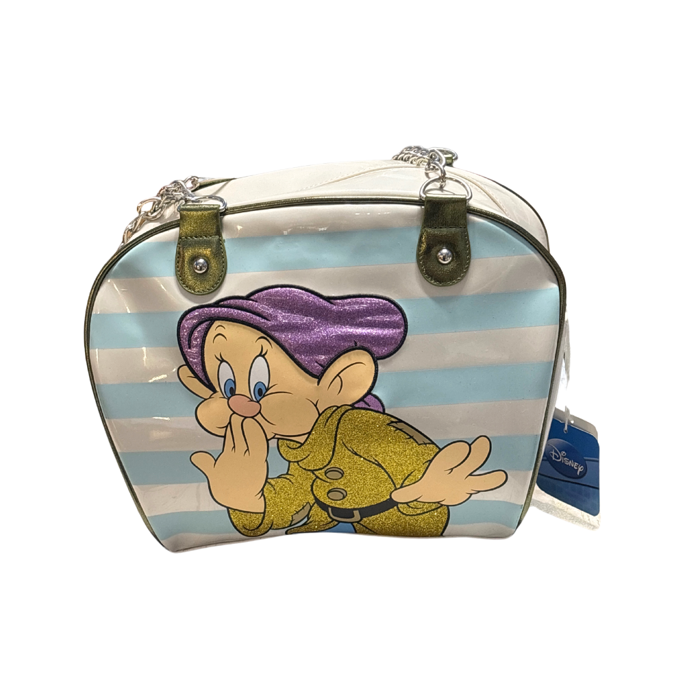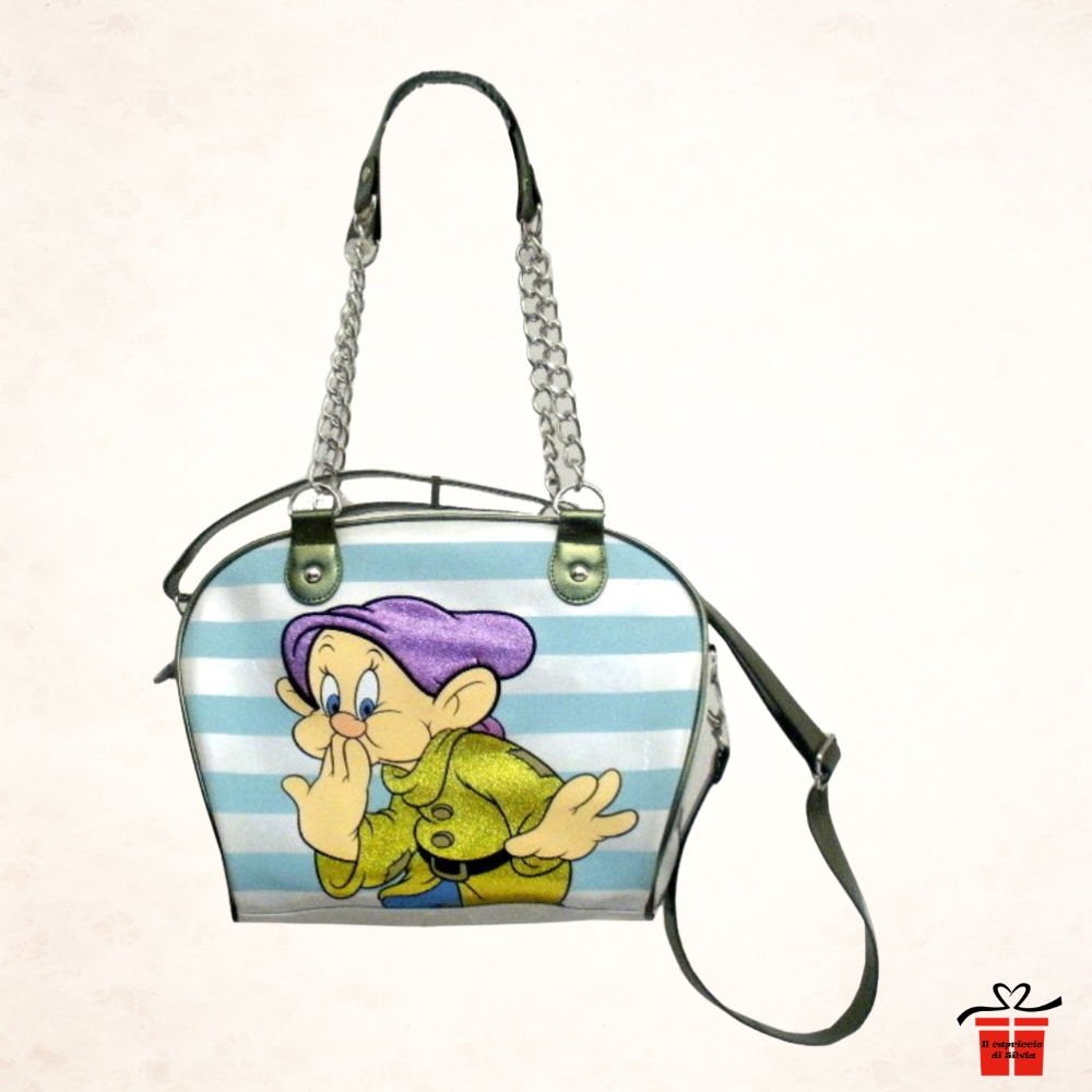 Cerchi una idea regalo che porti un pizzico di magia e simpatia nelle tue giornate? Questa borsa originale Walt Disney dedicata a Cucciolo dei Sette Nani è l'accessorio perfetto per chi ama distinguersi con uno stile vintage e gioioso. Realizzata in PVC lucido ad alta resistenza, unisce la robustezza di un materiale moderno a un design iconico e scintillante grazie ai dettagli glitterati.
