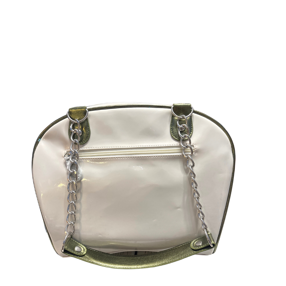Il consiglio di Silvia: Questa borsa è una vera esplosione di allegria! Adoro il contrasto tra lo stile rockabilly delle catenelle e la dolcezza di Cucciolo. La fodera fiorata all'interno è quella chicca in più che ti fa sorridere ogni volta che la apri per cercare le chiavi. Anche Jhonny Weiss è rimasto colpito dalla brillantezza dei glitter, è davvero un pezzo speciale per chi si sente un po' bambina nel cuore!